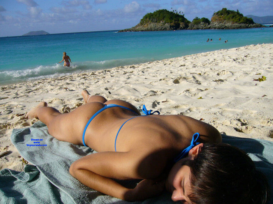 Down in the US Virgin Islands there are no nude beaches. How is a girl supposed to avoid tan lines? Wear the smallest bikini possible, then take it off once people start to leave!