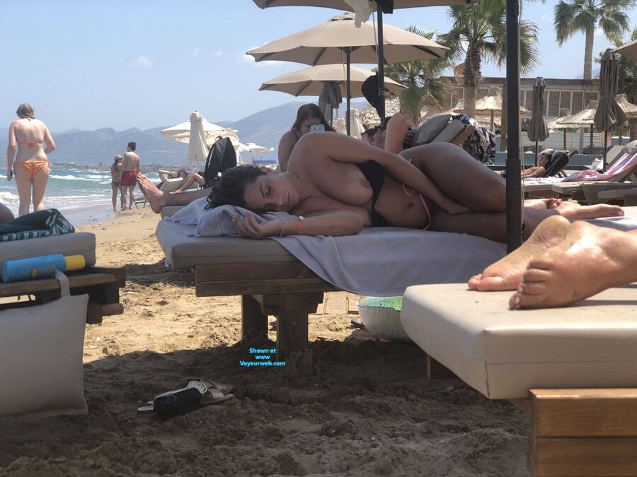 We saw this girl with her tit popped out sleeping on the beach next to us